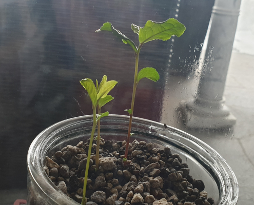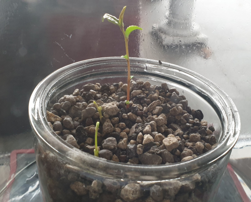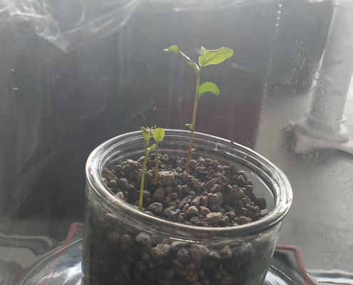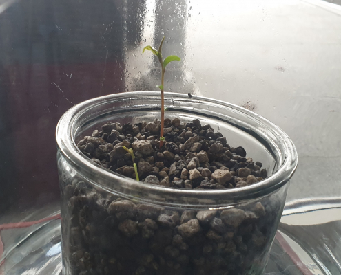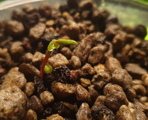 Accidentally, I found out that the most reliable route to germination is to put the seeds (untreated, uncracked, unshaken) into a pot filled with Luwasa Indoor-Outdoor Longtime-Substrat (This is probably the spelling for the Swiss market so that it feels like we are buying something with an international touch but we still kind of understand what it is. Link to Luwasa Switzerland here) a few centimeters below the surface and wait. It could not have been easier. What is more, a phenomenal percentage of fresh-from-the-field tea seeds successfully started germinating. (Sadly, this is not where the problems end).