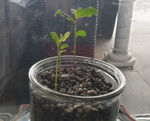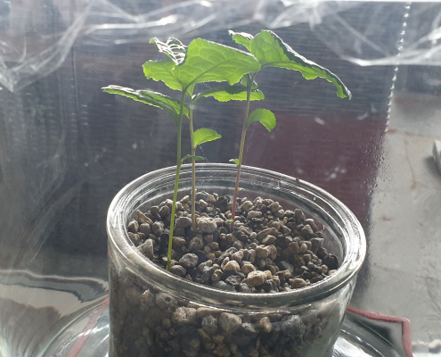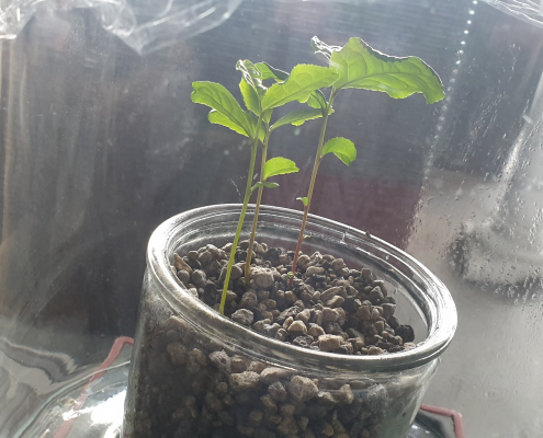 The tea plant grows tap roots (Cf. How deep are the roots of an organic tea plant) and this is where I made a serious mistake last time: Thinking that maybe the plant had stalled growth because it had noticed it was sitting in a shallow container, I replanted my seedlings and gave them fresh air to breathe outside. Sadly, they all died within a day or two. My local gardener told me not to put them into a new environment too early, and so this time, even though I know they are building tap roots, I’ll let them mature a little longer.