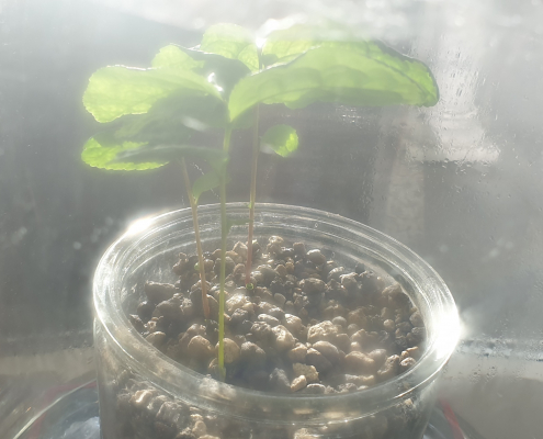 Once more, this is not where the problems end. At some point, your plant will be strong enough to be planted into a proper container. Like its 250 flowering Camellia sisters, Camellia Sinensis belongs to the Theaceae family and thus needs slightly acidic but well-draining soil. You can use the same soil as you would for camellias (and magnolias, I think), but well-draining soil here means that almost all the water you pour in at the top, comes out at the bottom of your pot, which is quite a hassle. Furthermore, it needs to be watered on a daily basis. Watching the seeds turn into seedlings in the glass house was the easy part. Now follows the hard work. In addition to this, it will take 3-5 years for the plant to grow enough so that you can start producing tea. Also note that 500g of wet tea leaves will yield about 100g of dry tea leaves to put into your cup. (And now you will understand why I have a laughing fit every time I discover a website that makes you think you can easily produce your own tea at home).